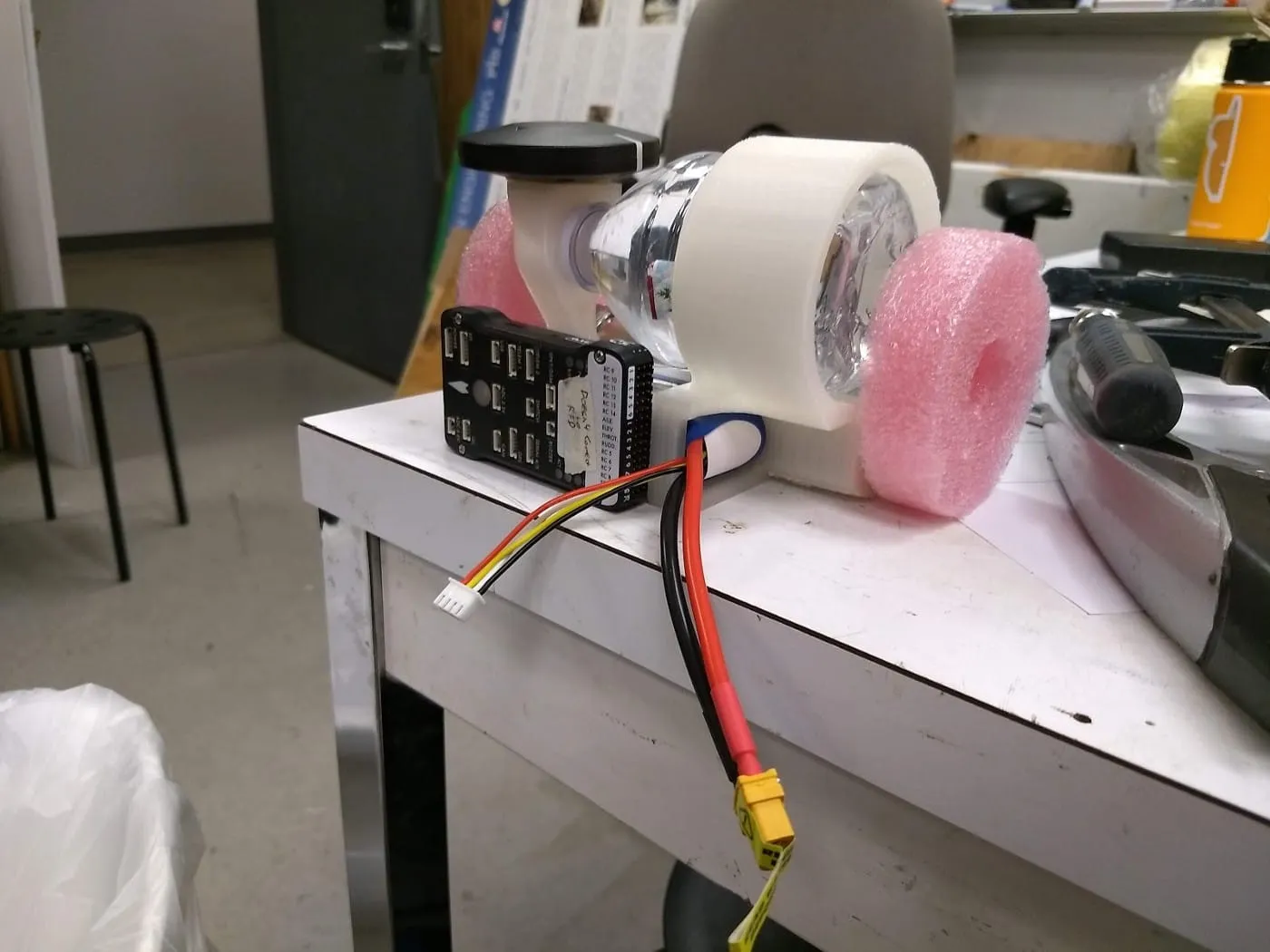Lastly, we developed our antenna tracker. This automatically points a Ubiquiti Nanostation M, carrier grade equipment designed for long range connection, at our plane during flight. Once this is finished, we will be able to reduce the number of people necessary at test flights and competition by one.