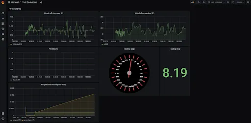 In addition to redesigning the backend, we set out to improve the way we processed flight data from our aircraft. We created a system where our backend server gathers telemetry data from the plane, processes the data, and stores it in a database called InfluxDB. In order to visualize this data, we used Grafana to take the flight data stored in our Influx database and display the data in a user-friendly, customizable fashion that allows us to see many flight measurements on a singular dashboard. This was a great improvement over our previous system, loggo, because it was difficult to use and lacked the ability to view multiple flight measurements at a time.