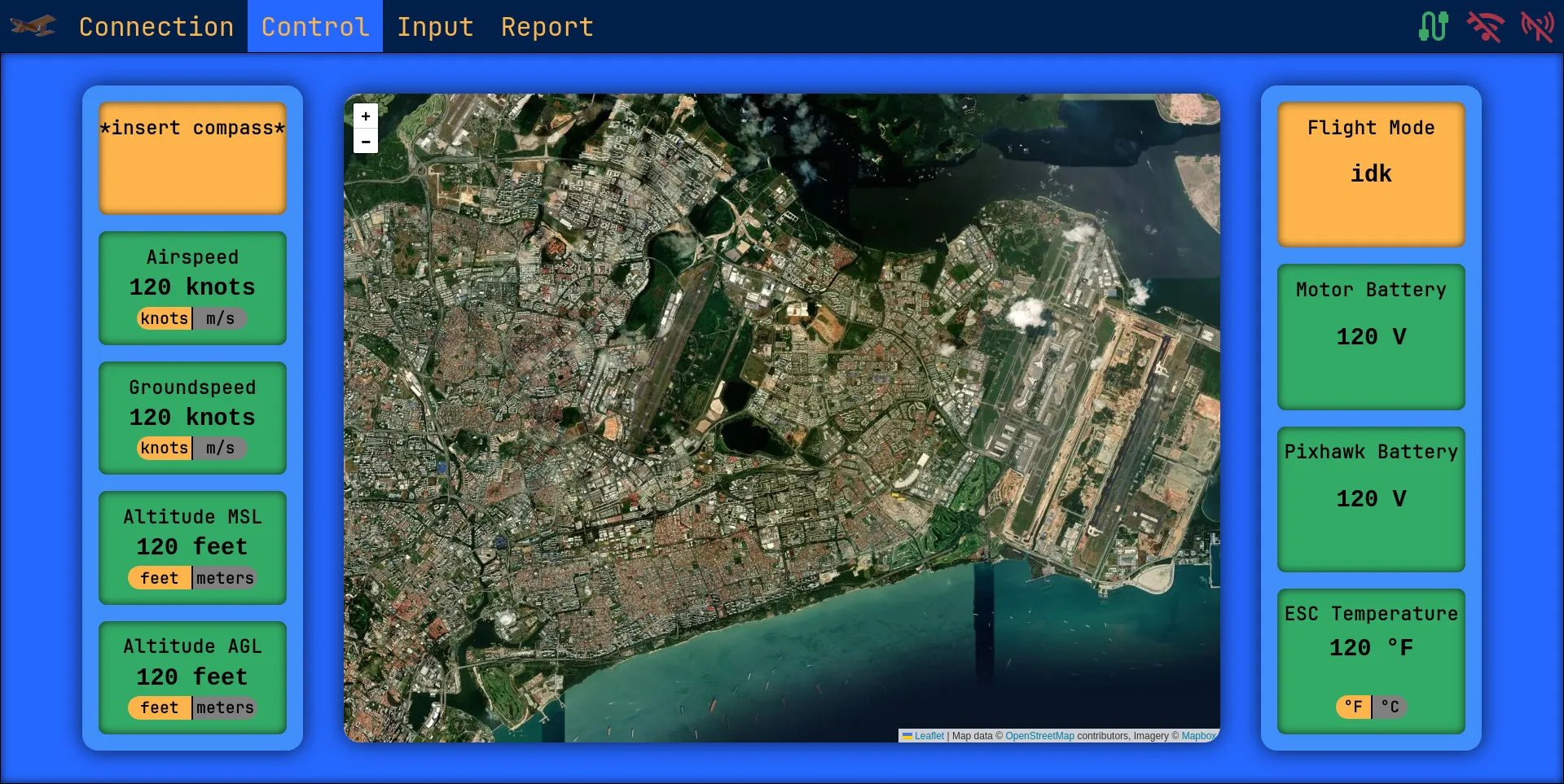 On the software for the ground control station (GCS), we have been hard at work with a redesign of our frontend web application. The web application is a crucial part of our system since it is the medium which a human operator interfaces with our system. One can monitor the status of the mission, position of the plane, vital sensor readings, incoming images from the camera, and much more. This year, the software team has chosen to implement the GCS frontend using the React framework. So far, the team has produced several pages to monitor and control parts of the mission. The pages have been designed to be easy to use while responsive to various screen sizes and visually appealing at the same time. On the backend of the GCS, we have been implementing a new feature to allow us to save flight logs to persistent storage even after the mission has ended. Future work on the GCS includes finishing the connections between the backend to the frontend and on-board computer.